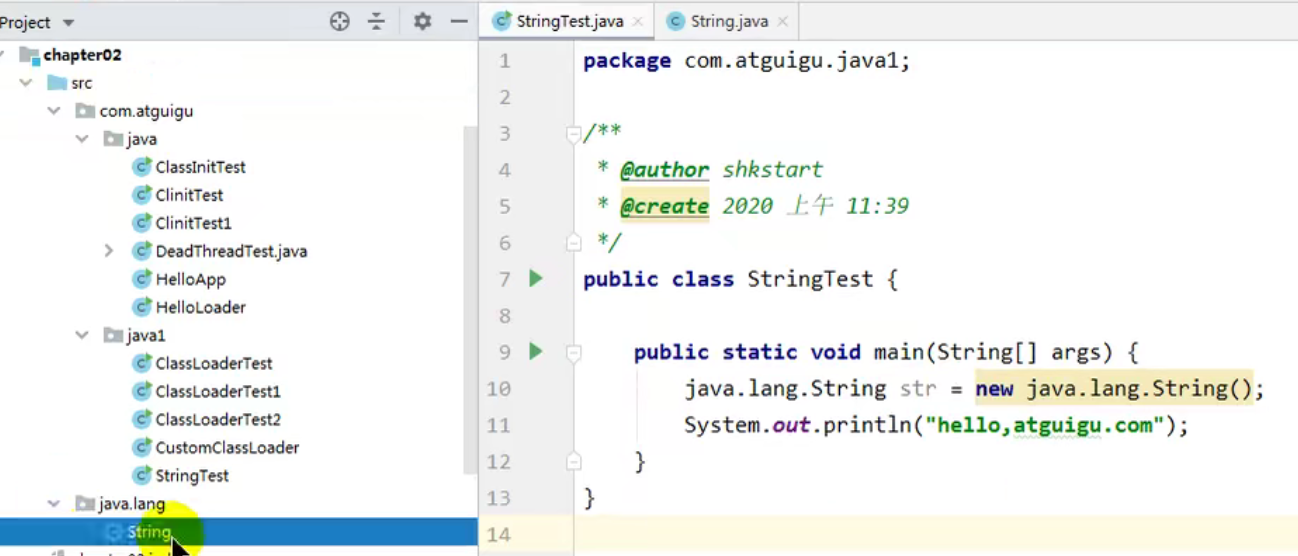 - 案例:自定义了一个String类,String str = new String(); 默认调用自定义的String. 蕴含着双亲委派机制。