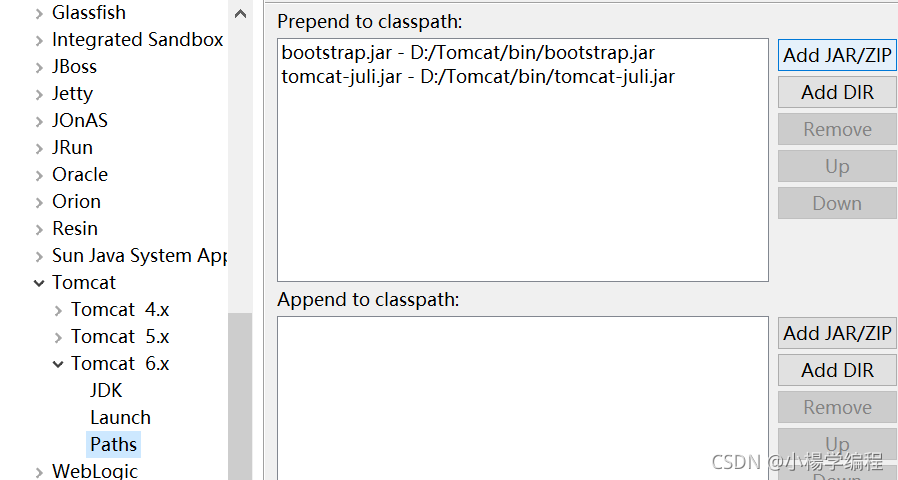 3.选择好后在Paths点击Add JAR/ZIP找到你的tomcat的安装路径把需要的JAR添加进来