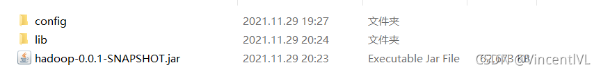 创建一个新的文件夹,如 hadoop,将 lib 和 jar 包拷贝到新文件夹 hadoop 中,并在文件夹中创建一个 config 文件夹,将配置文件拷贝到 config 中