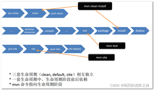 - Maven生命周期就是为了对所有的构建过程进行抽象和统一