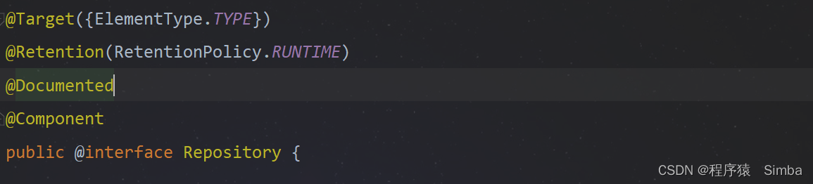 @Repository用在持久层的接口上,这个注解是将接口的一个实现类交给spring管理。