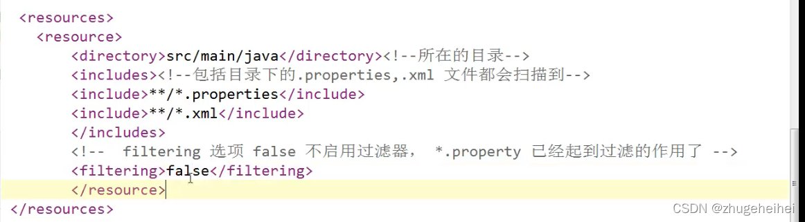 做法:在如下的<build>标签中引入resource标签,指定想要拷贝到target/classes的文件。