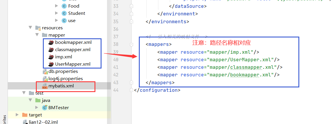 (6) 把映射文件引入到mybatis.xml配置文件中,如下: