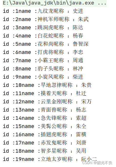 System.out.println("id :"+ id + "name :" +name + "昵称 :"+nickname);