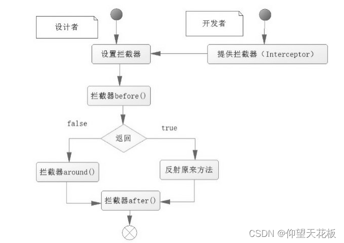 由于动态代理一般都比较难理解,程序设计者会设计一个拦截器接口供开发者使用,开发者只要知道拦截器接口的方法、含义和作用即可,无须知道动态代理是怎么实现的。用JDK动态代理来实现一个拦截器的逻辑,为此先定义拦截器接口Interceptor