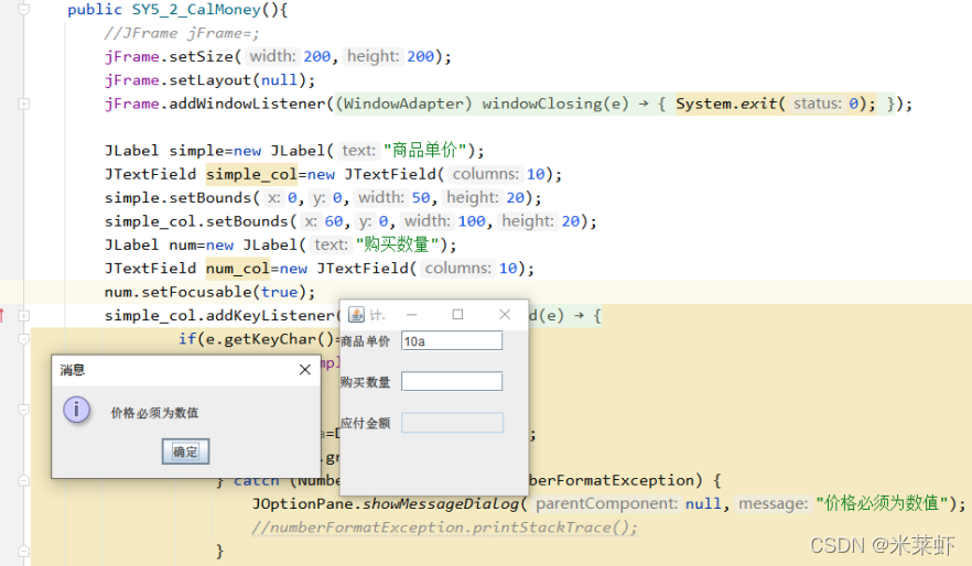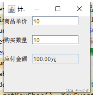 界面上设置三个文本框,第一个文本框给用户输入商品单价,第二个则是给用户输入商品数量,第三个用于显示总金额。