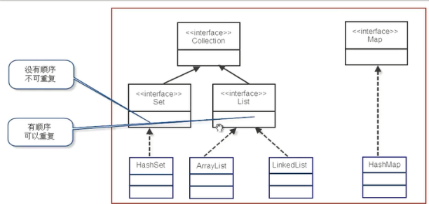 ? Collection 接口存储一组不唯一,无序的对象 ? List 接口存储一组不唯一,有序(索引顺序)的对象 ? Set 接口存储一组唯一,无序的对象 ? Map接口存储一组键值对象,提供key到value的映射 ? Key 唯一 无序 ? value 不唯一 无序