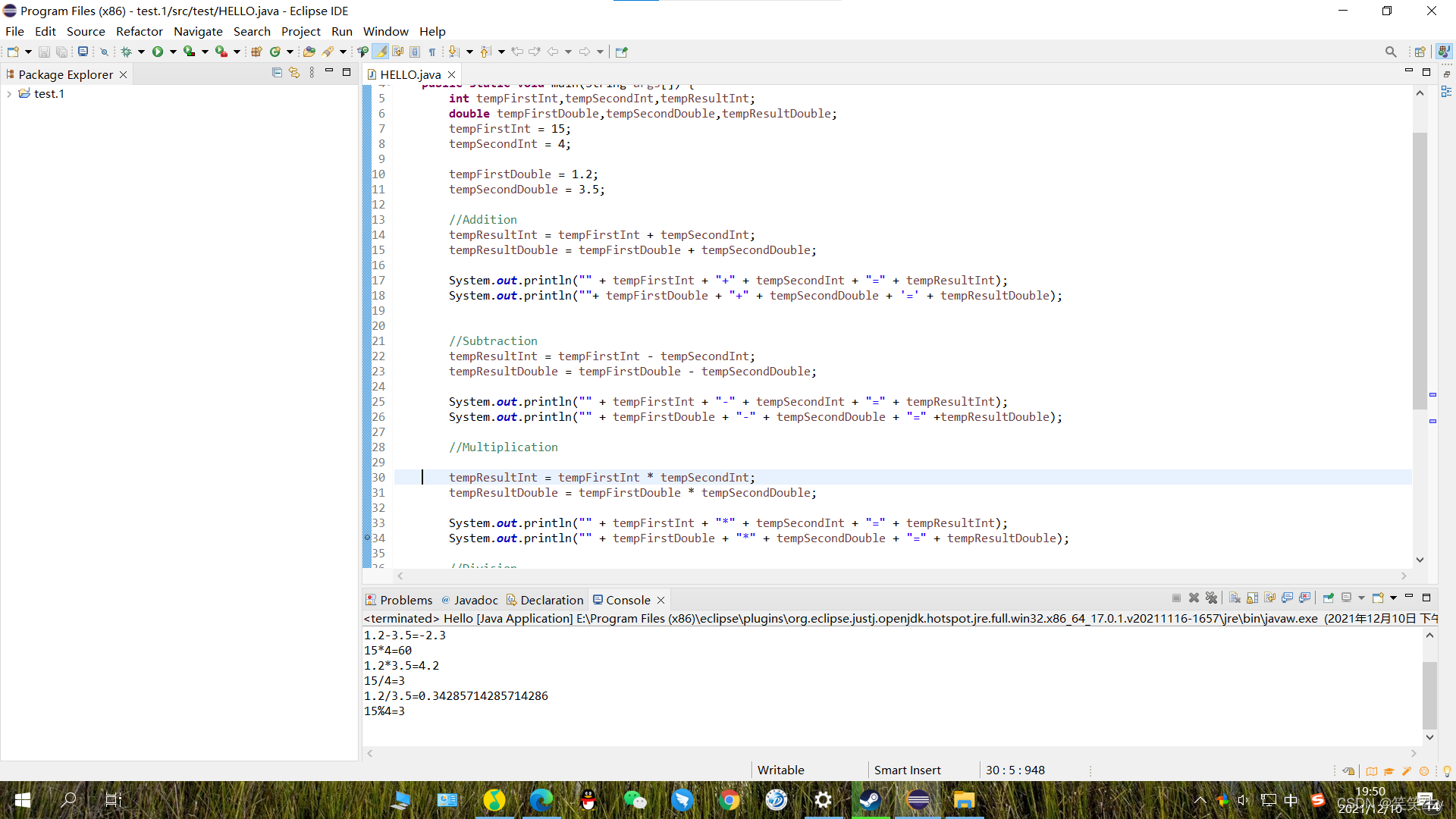 System.out.println("The absolute value of" + tempNumber1 + "is" + tempNumber2);