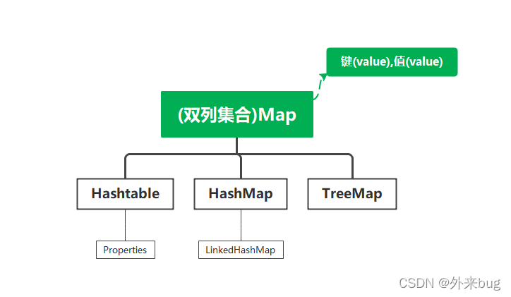 Map接口是一种双列集合,它的每个元素都包含一个键对象Key,值对象Value。键值对之间存在的一种对应关系,叫做映射。从Map集合中访问元素时,只要指定了Key,就能找到对应的Value。