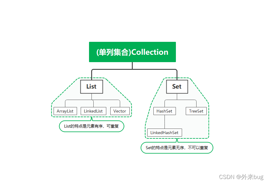 集合按存储结构分为两大类:单列集合Collection,双列集合Map