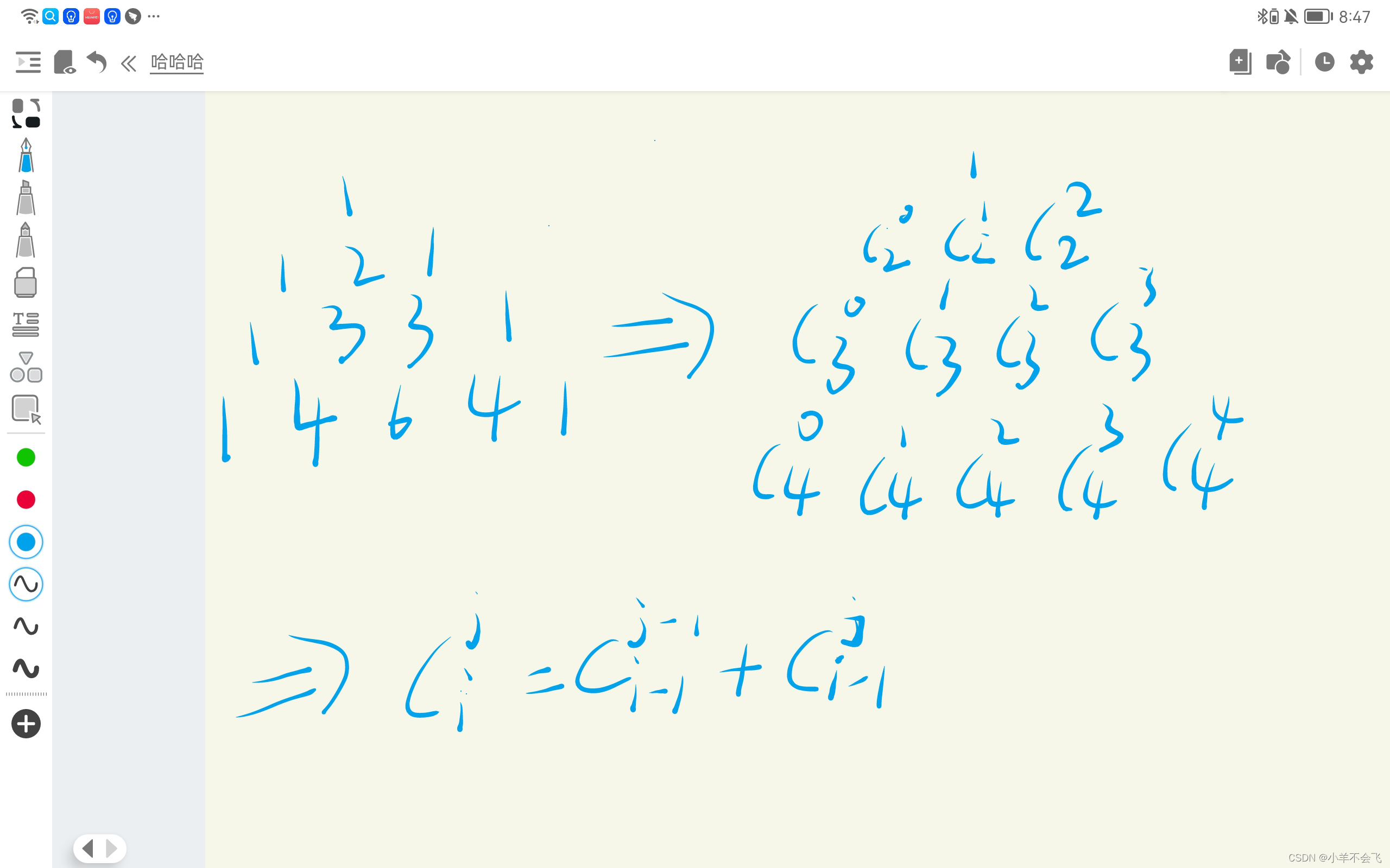 这个题归根结底也是一个组合数问题,最主要在于发现其中的排列组合规律 ,并且联想到杨辉三角求组合数。