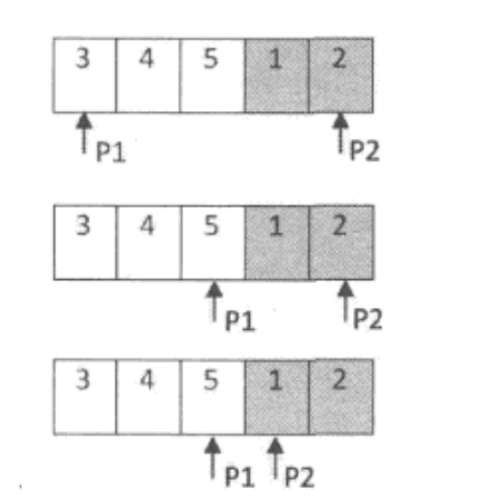 在这两种情况下,第一个指针和第二个指针指向的数字都是1,并且两个指针中间的数字也是1,左右中间的三个数都相同。