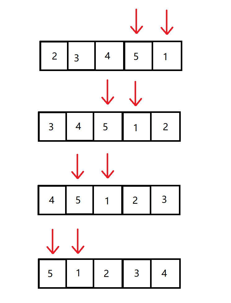 思路2其实和思路1类似,都属于遍历数组。但思路2效率会高那么一点,但如果数组只是旋转一次,那么思路2也是要遍历整个数组的。或数组全部旋转了一遍又变成了{1,2,3,4,5},同样也要遍历整个数组。