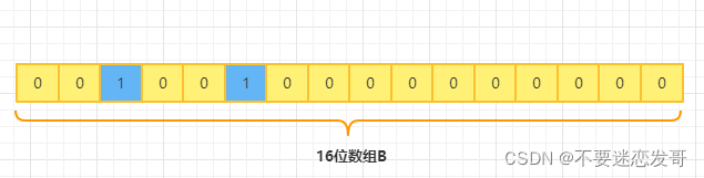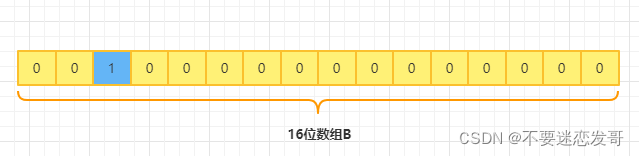 我们现在把d1映射过来,假设Hash1(d1)= 2,我们就把数组B中,下标为2的格子改成1,如下: