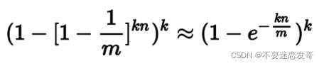 假设位数组的长度为m,哈希函数的个数为k。检测某一元素是否在该集合中的误报率是: