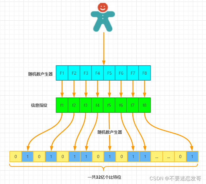 第一步:建立一个32亿二进制(比特),也就是4亿字节的向量。全部置0