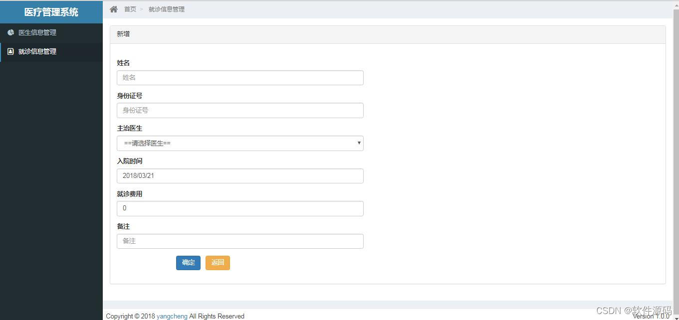 (5)、就诊时间默认为当前时间,自动生成,不需填写。