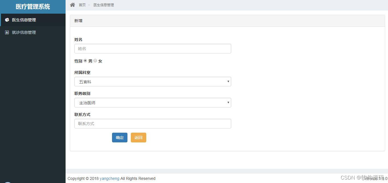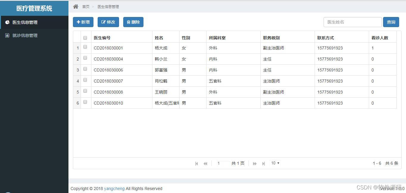 f. 看诊人数默认为0,自动生成,不可手动修改,每添加一次就诊信息,对应医生的看诊人数+1,实现累加。