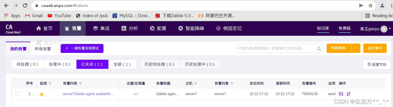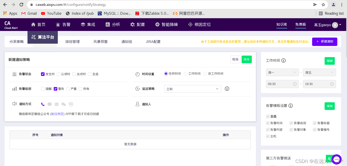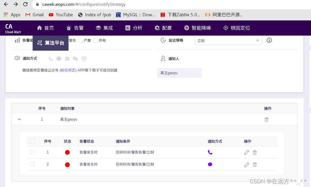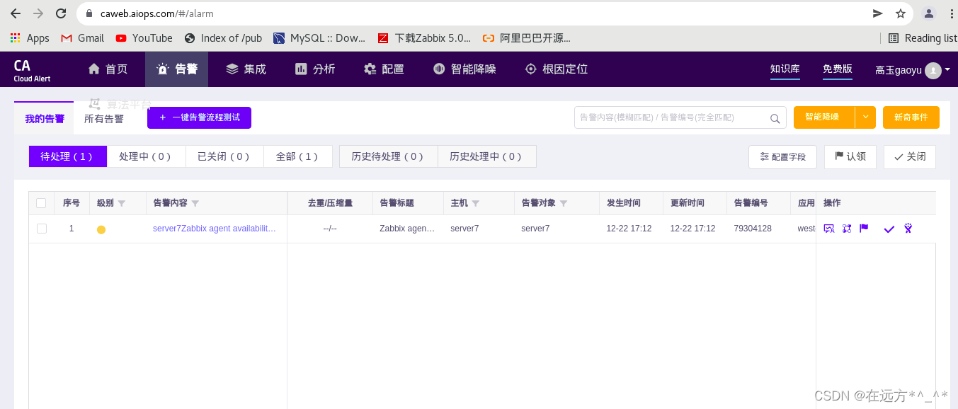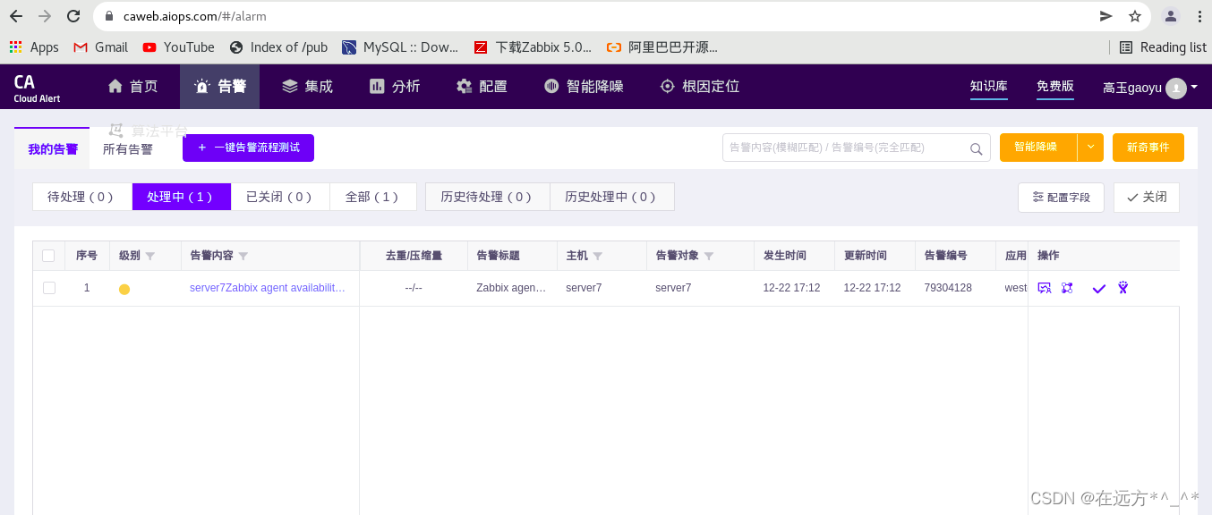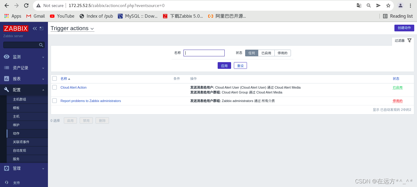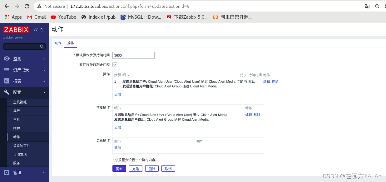 ?在前端; 1.管理---报警媒介类型 除了第二个(脚本名称: "cloudalert/bin/alert.sh"),将其他禁用