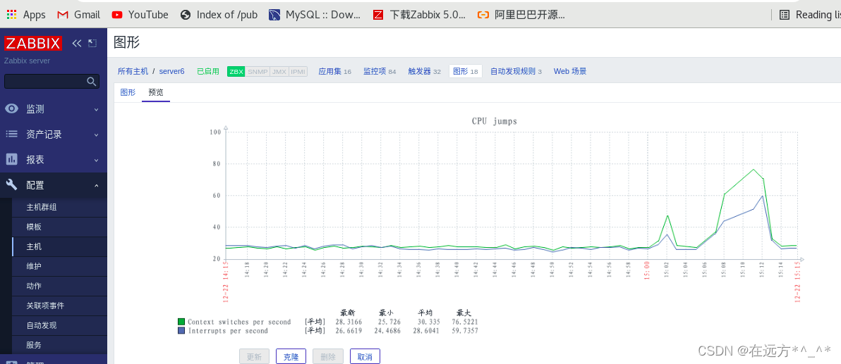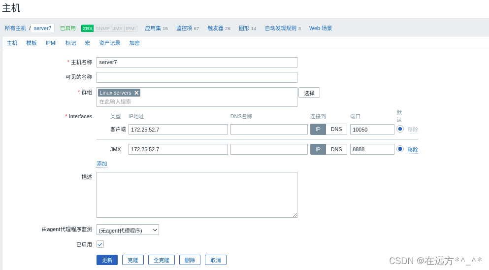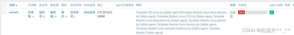 [root@server6 ~]# systemctl restart zabbix-agent.service ###在前端可以看到JMX---红的
