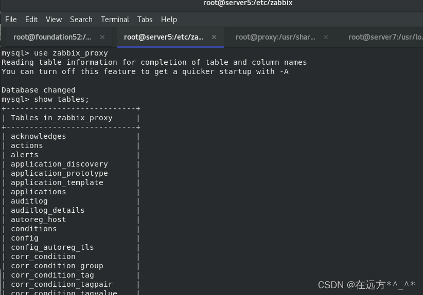 [root@proxy zabbix-proxy-mysql-5.0.18]# zcat schema.sql.gz |mysql -h 172.25.52.5 -uzabbix -p zabbix_proxy