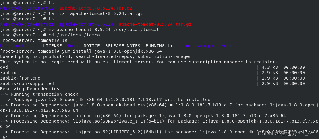[root@server7 tomcat]# yum install java-1.8.0-openjdk.x86_64 ##从本机下载