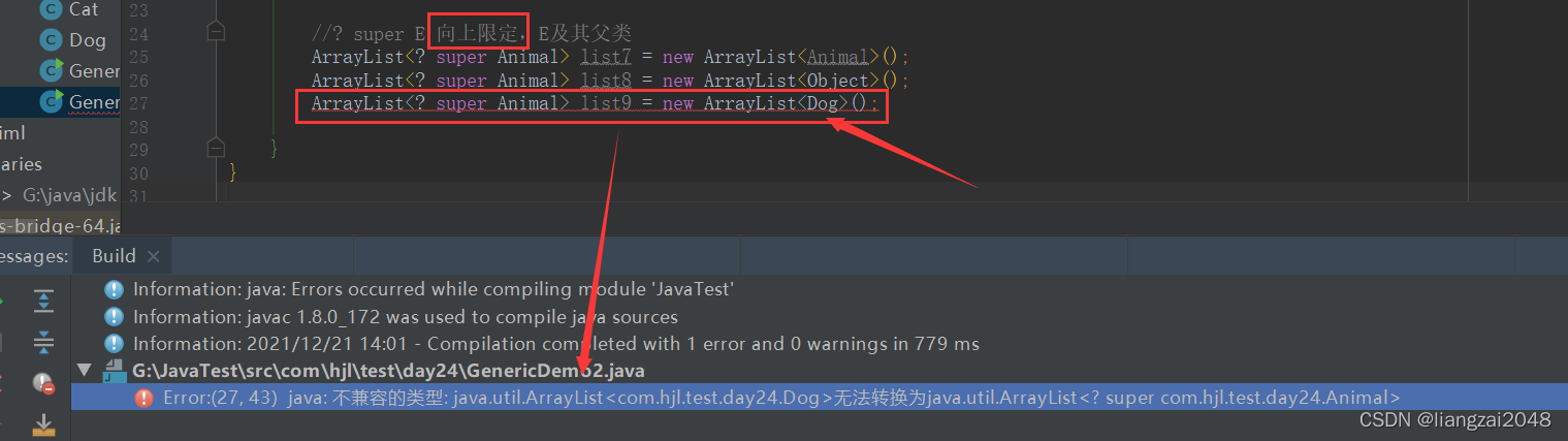 // ArrayList<? super Animal> list9 = new ArrayList<Dog>();