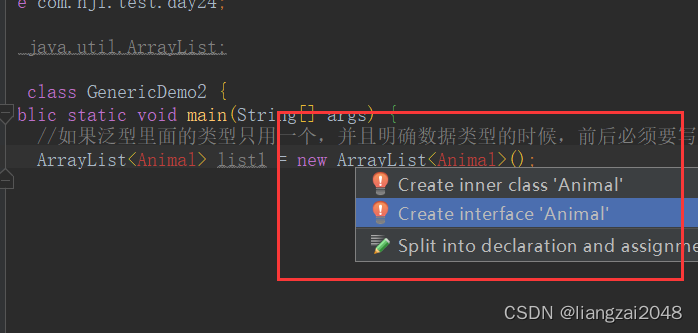ArrayList<Animal> list1 = new ArrayList<Animal>();