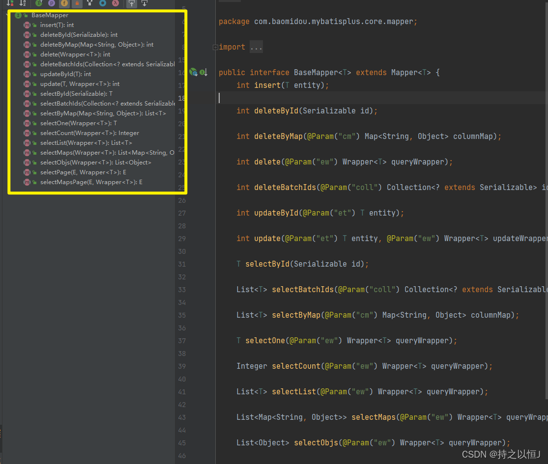 ????????BaseMapper是mp包下的一个重要接口,里定义了大部分基础的CRUD操作,还提供了分页功能,架构图: