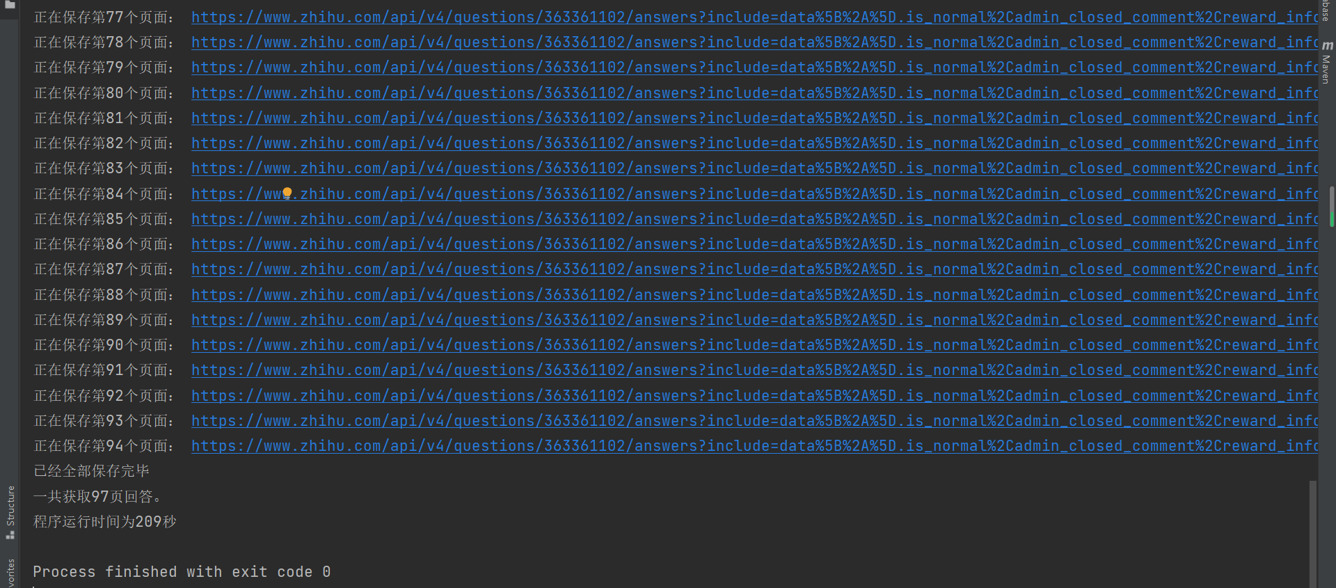 * 遍历知乎回答集合,将集合里的元素全部保存到硬盘中