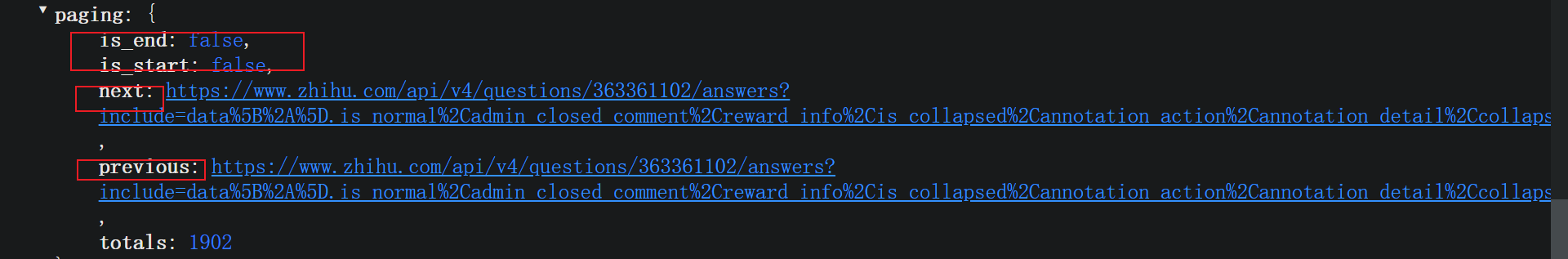 String firstURL = "https://www.zhihu.com/api/v4/questions/363361102/answers?include=data%5B%2A%5D.is_normal%2Cadmin_closed_comment%2Creward_info%2Cis_collapsed%2Cannotation_action%2Cannotation_detail%2Ccollapse_reason%2Cis_sticky%2Ccollapsed_by%2Csuggest_edit%2Ccomment_count%2Ccan_comment%2Ccontent%2Ceditable_content%2Cattachment%2Cvoteup_count%2Creshipment_settings%2Ccomment_permission%2Ccreated_time%2Cupdated_time%2Creview_info%2Crelevant_info%2Cquestion%2Cexcerpt%2Cis_labeled%2Cpaid_info%2Cpaid_info_content%2Crelationship.is_authorized%2Cis_author%2Cvoting%2Cis_thanked%2Cis_nothelp%2Cis_recognized%3Bdata%5B%2A%5D.mark_infos%5B%2A%5D.url%3Bdata%5B%2A%5D.author.follower_count%2Cvip_info%2Cbadge%5B%2A%5D.topics%3Bdata%5B%2A%5D.settings.table_of_content.enabled&limit=20&offset=0&sort_by=updated";