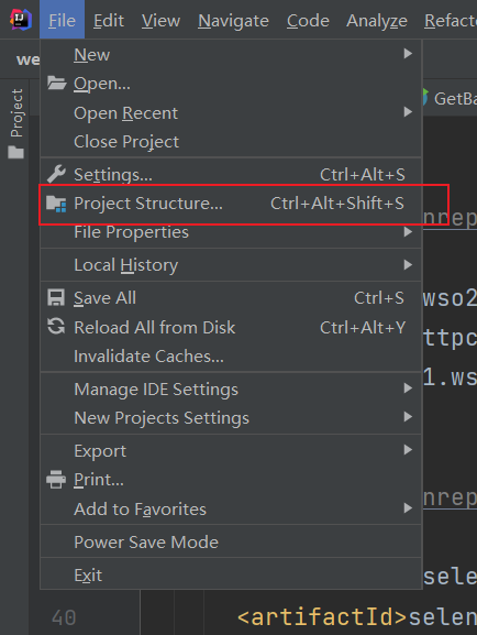 到selenium官网下载想要使用的版本(我用的是3.141.59),然后打开idea,点开File,找到Project Structure点击