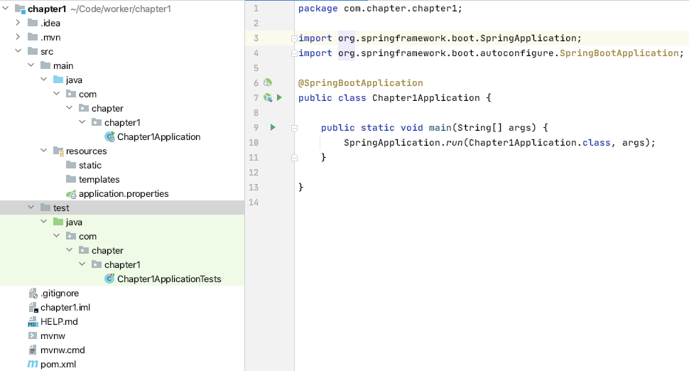 src/main/java 下的程序入口:Chapter1Application src/main/resources 下的配置文件:application.properties src/test/ 下的测试入口:Chapter1ApplicationTests