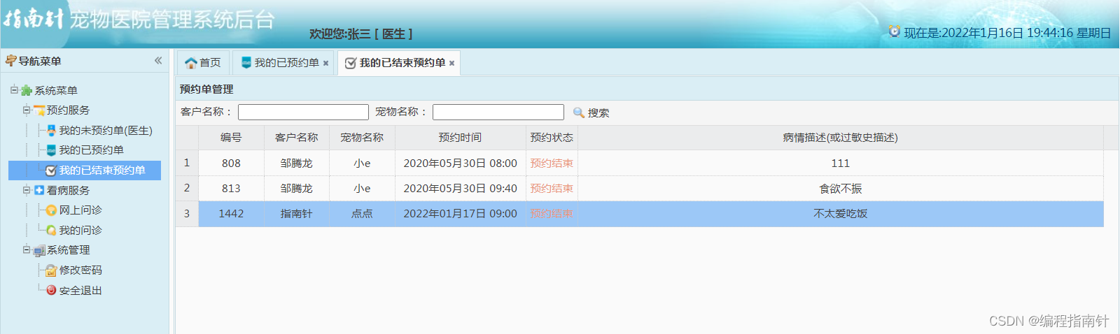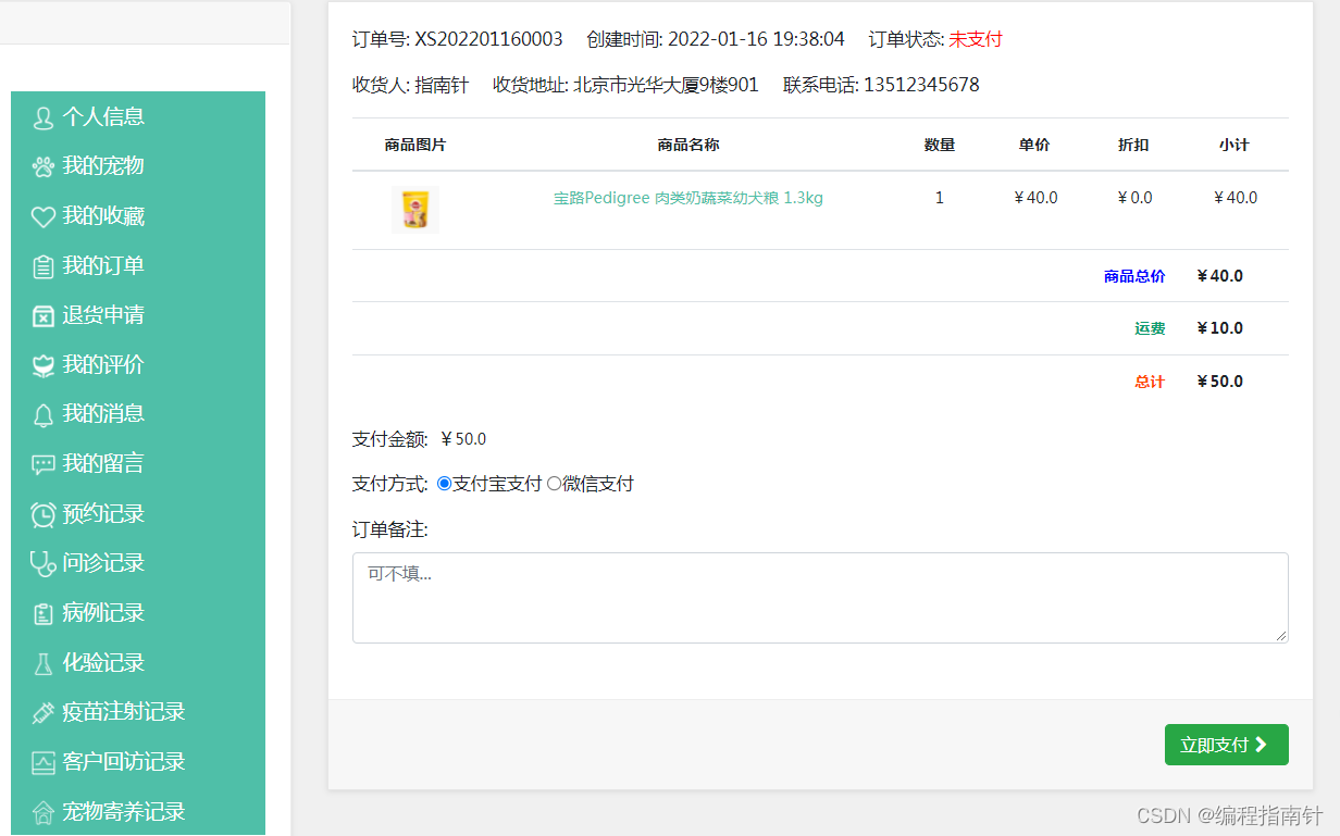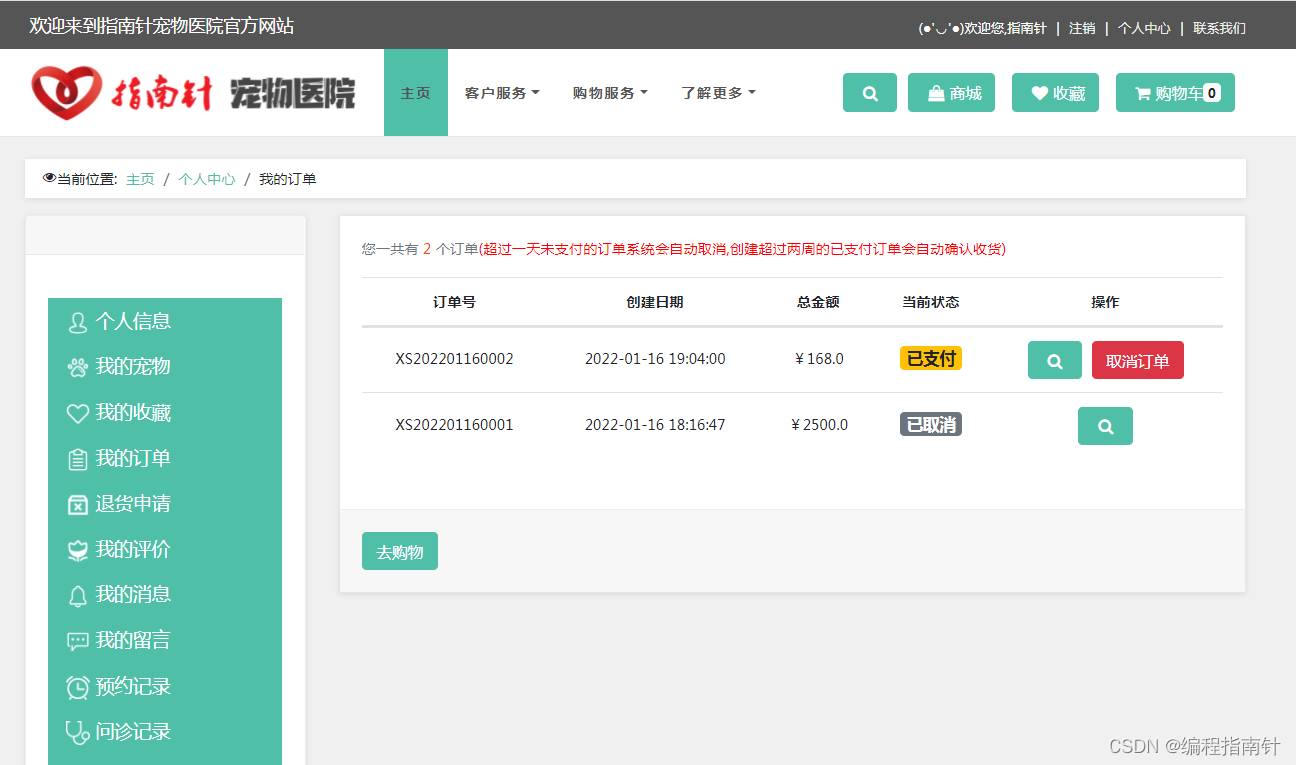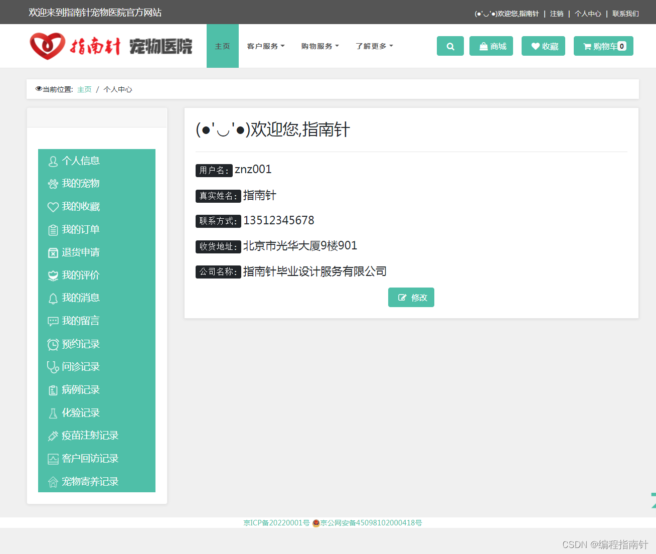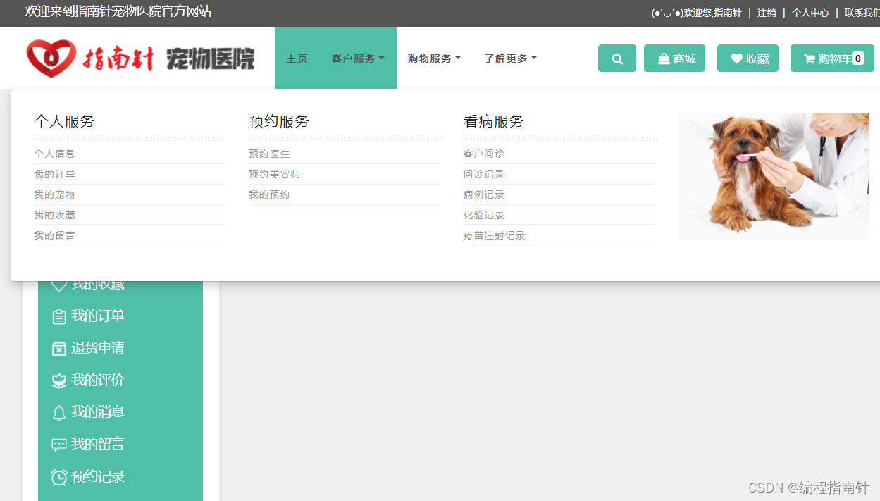 注册用户可以修改个人信息和宠物信息,发布预约单(预约医生和美容师),在医院的商城购物,收藏商品,给官方留言,查看与自己相关的记录信息,如:病例记录、预约记录、问诊记录、订单记录等,注销退出系统。