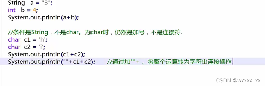 ②使用"+"把几段数据连接起来,"+"在这里是用作连接符。对比c++的话,c++不用"+"也可实现此功能,但是为char类型的数据时,仍然是加号,不是连接符。