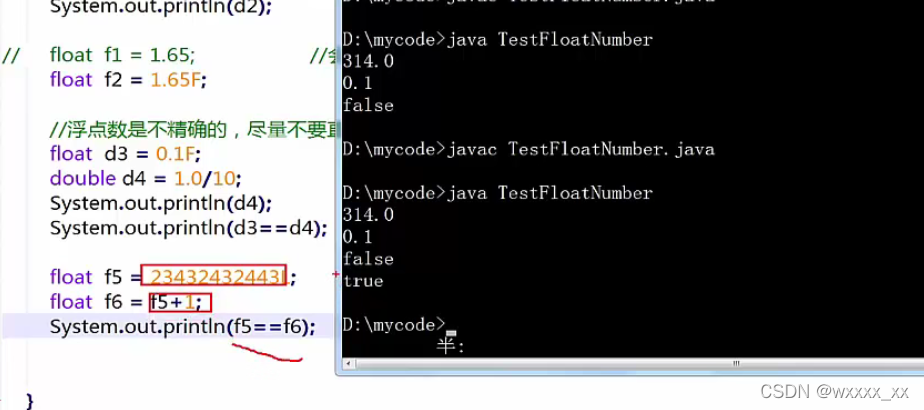 ②浮点运算:如果两个操作数有一个为double,则结果为double。只有两个操作数为float,则结果为float。