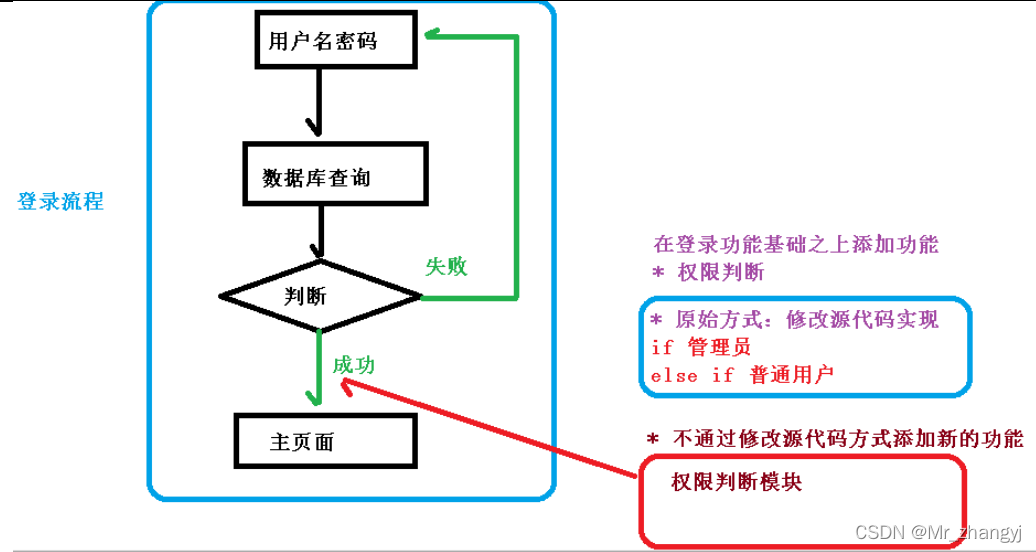 (2)通俗描述:不通过修改源代码方式,在主干功能里面添加新功能