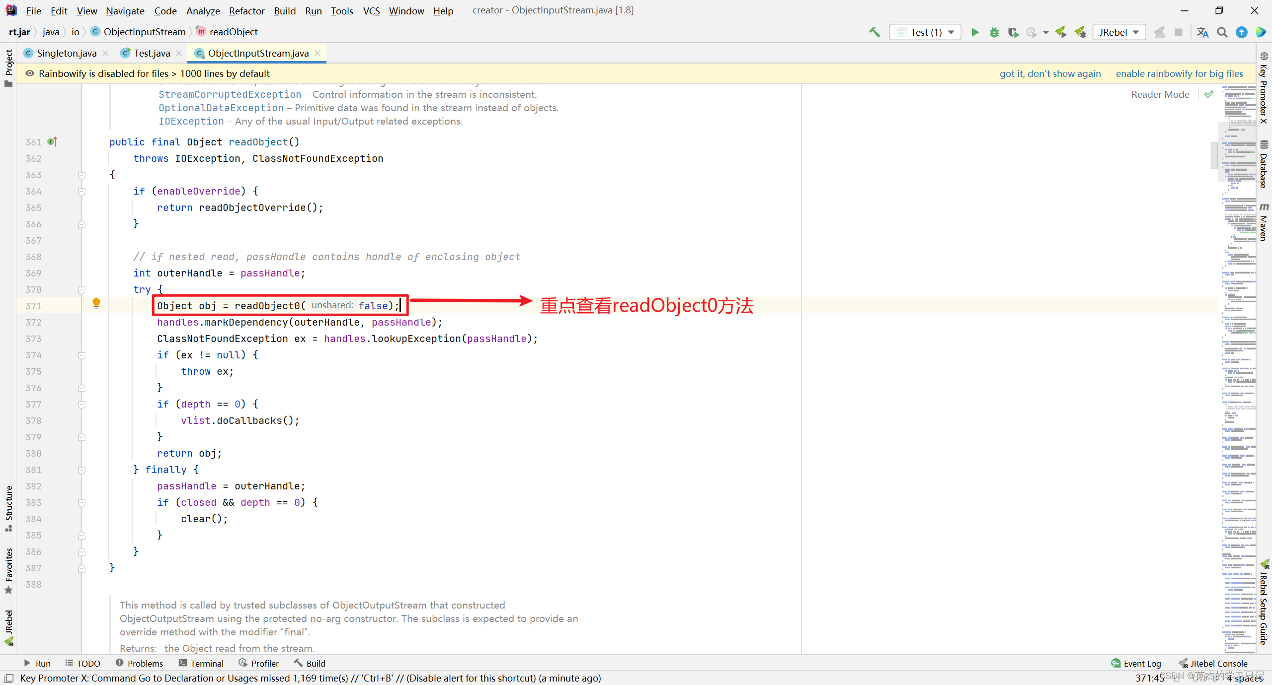 看哪一个方法的底层代码呢?其实就是readObject()方法。