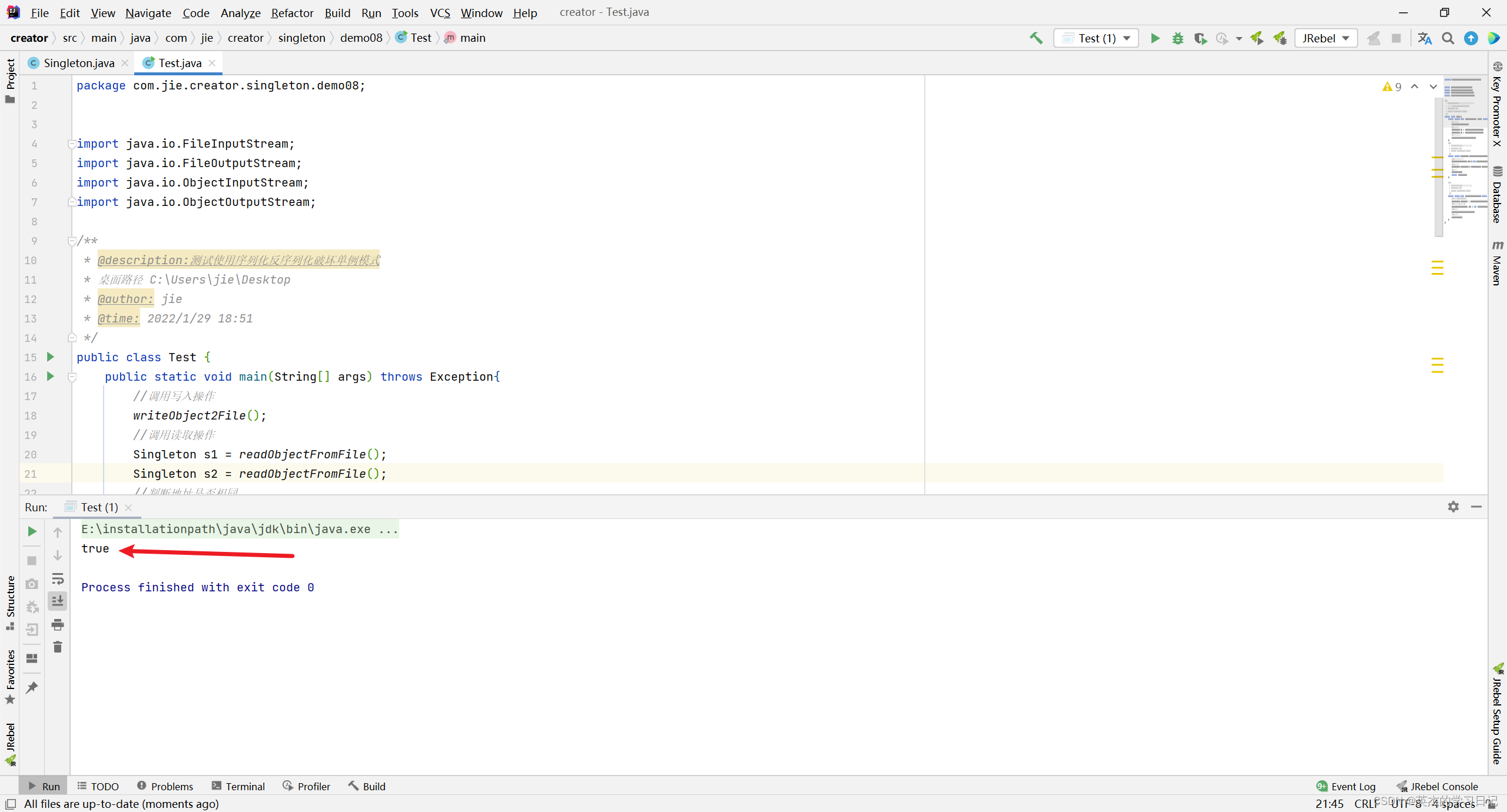 Singleton s2 = readObjectFromFile();