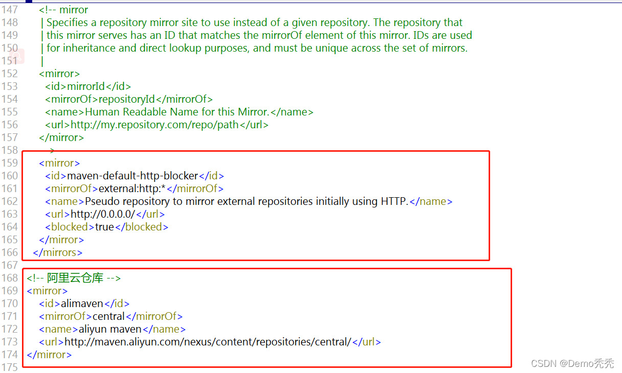 ?<mirrors></mirrors>里面可以嵌套多个<mirror></mirror>(大概理解就是你有多张电话卡,那个信号好就用那个)