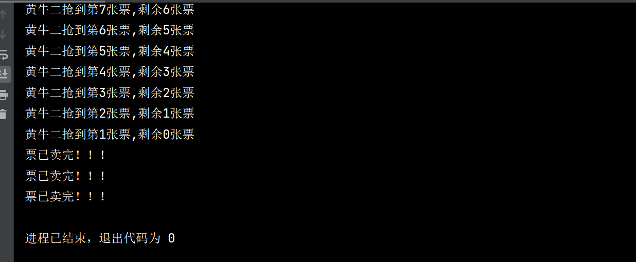 System.out.println(Thread.currentThread().getName()+"抢到第"+count+"张票,"+"剩余"+(--count)+"张票");