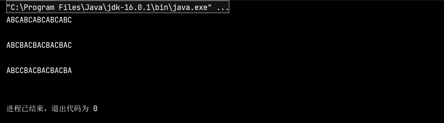 4. 编写一个程序,启动三个线程,三个线程的ID分别是A,B,C;每个线程将自己的ID值在屏幕上打印5遍,打印顺序是ABCABC…重复三遍