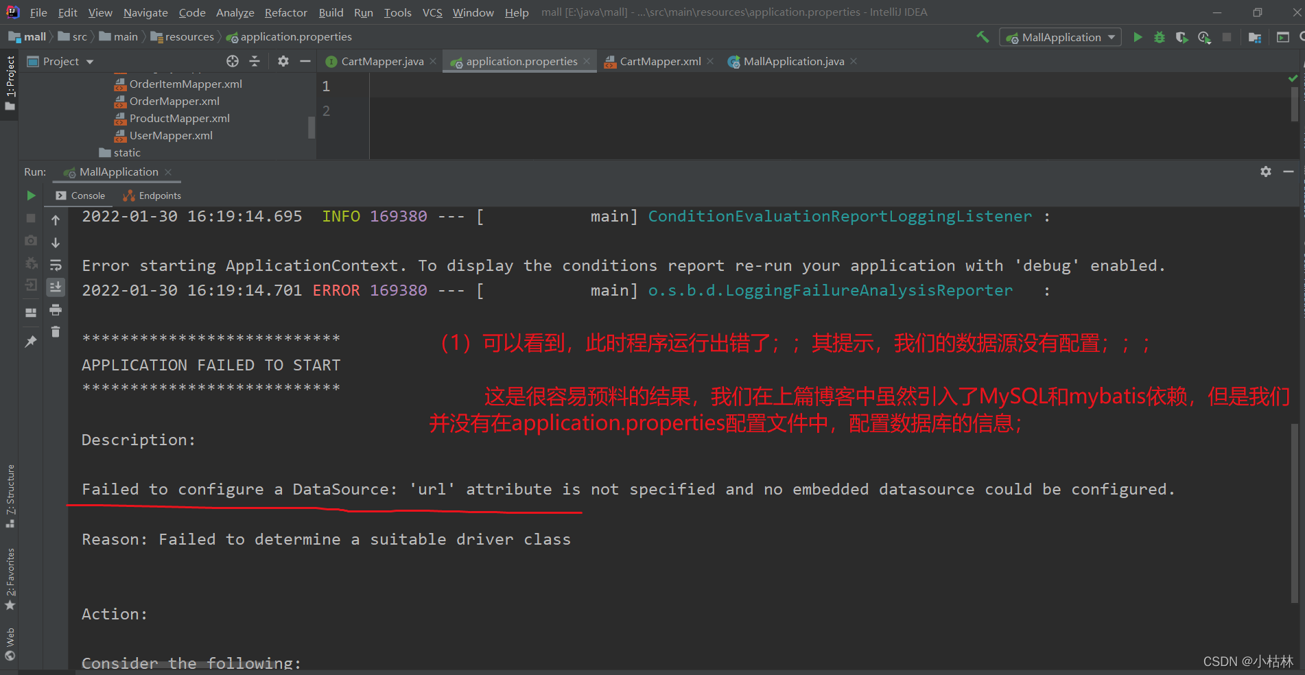 1.前面,我们生成了大量的Mapper接口和mapper.xml文件,这些是需要连接数据库的;但又因为,项目没有配置数据库;所以,此时程序是跑不起来的;