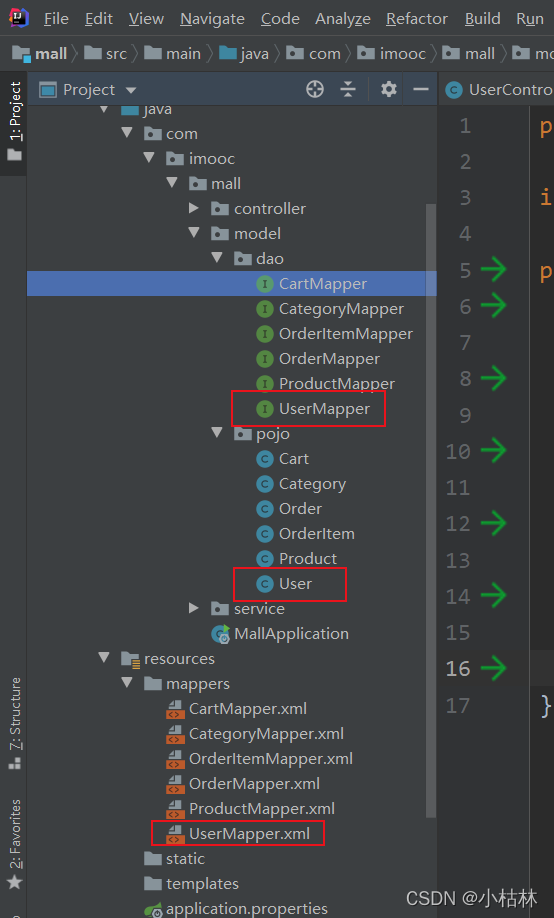 1.实体类、Mapper接口、Mapper.xml文件,在前面已经通过【mybatis-generator】插件,自动生成了;