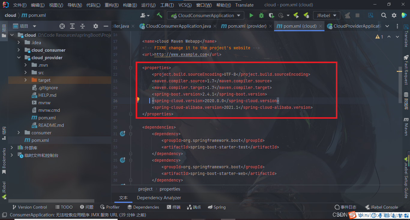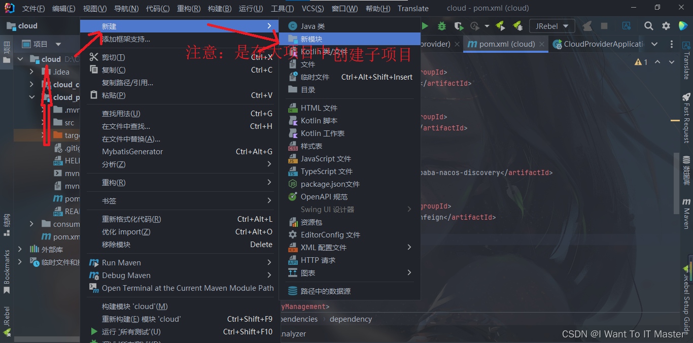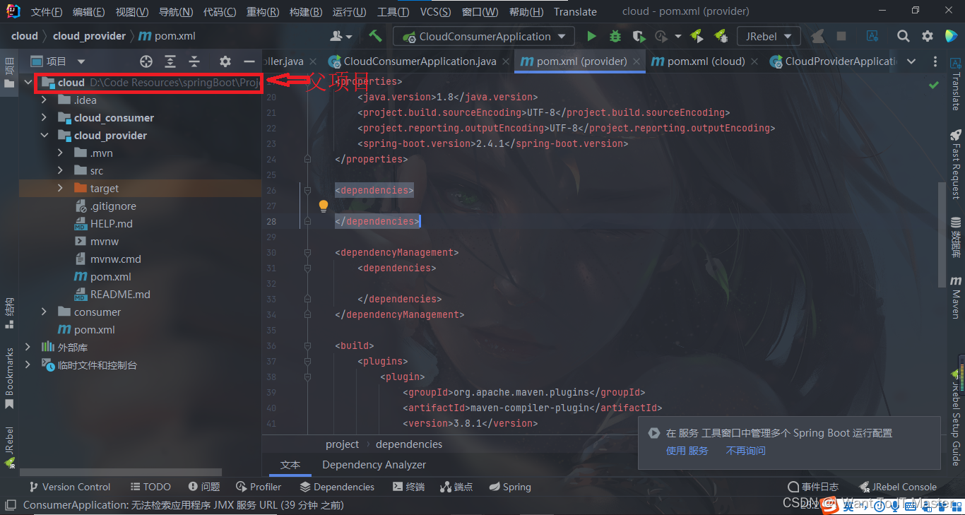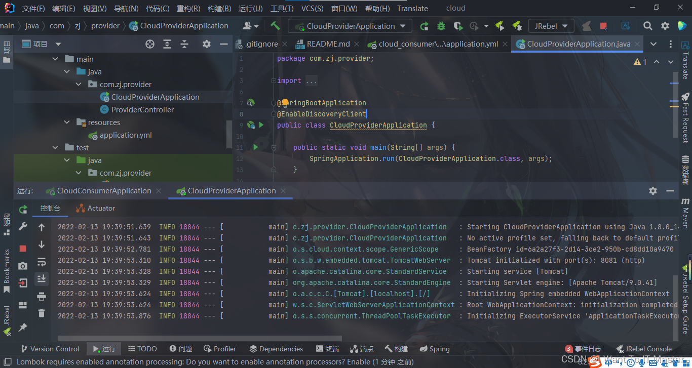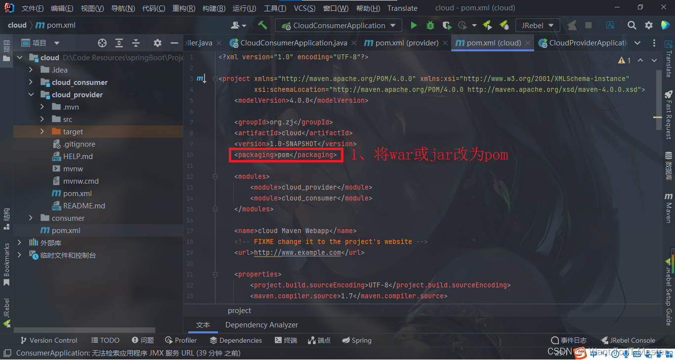 创建两个springBoot项目,名叫cloudconsumer和cloudprovider
