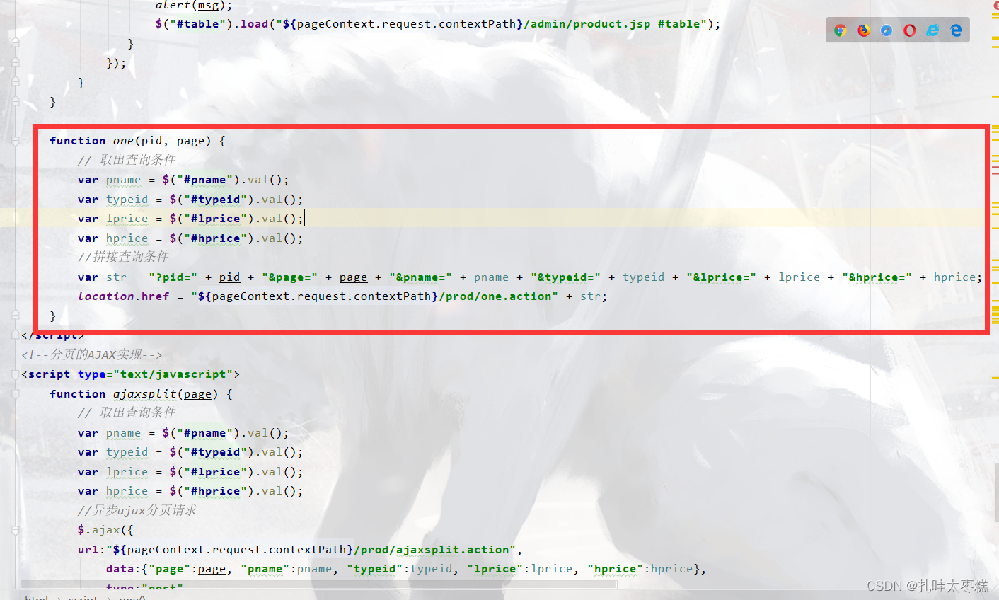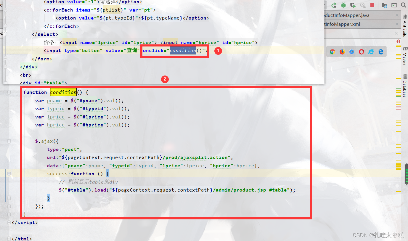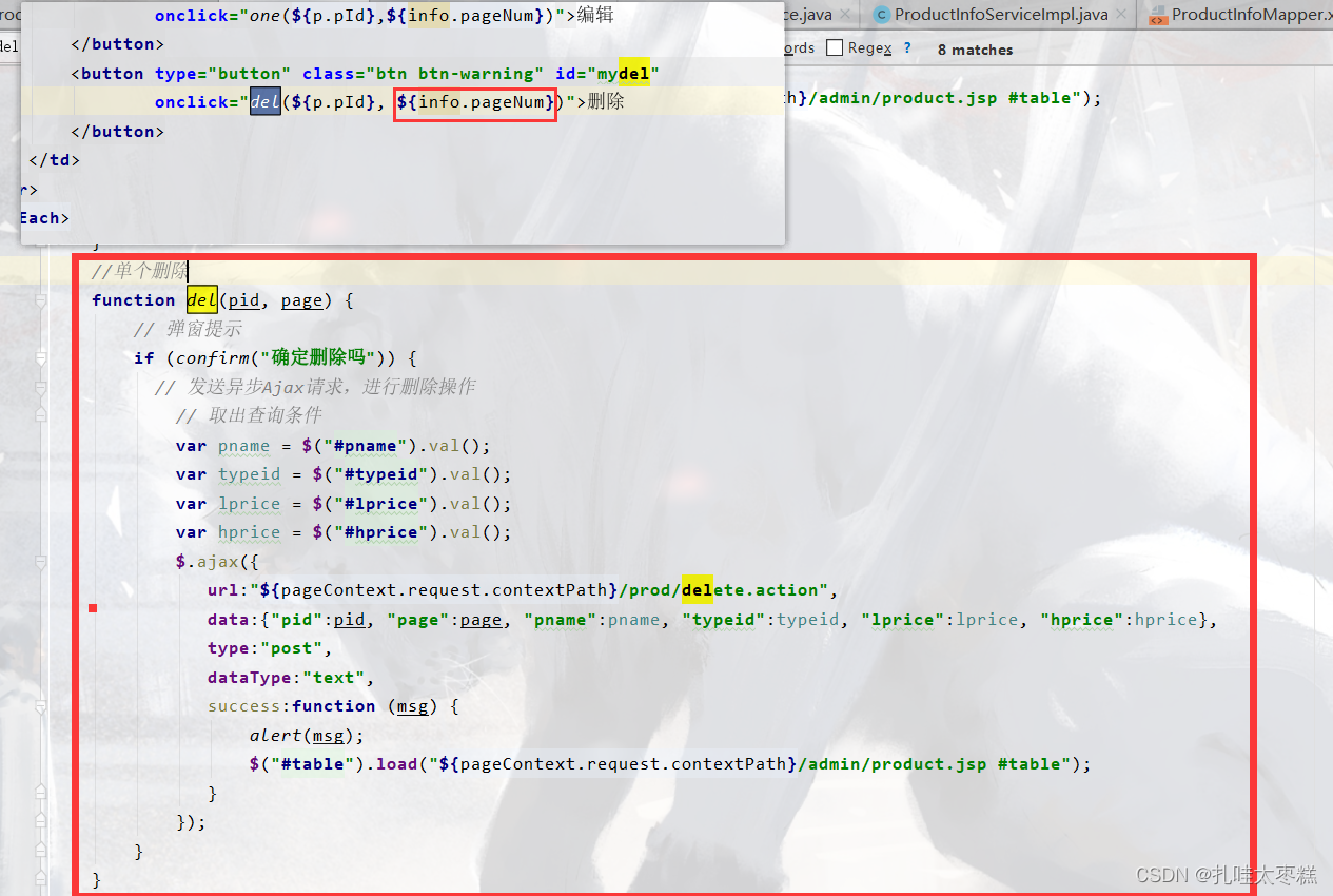 ????????首先修改一下前端product.jsp的四处代码