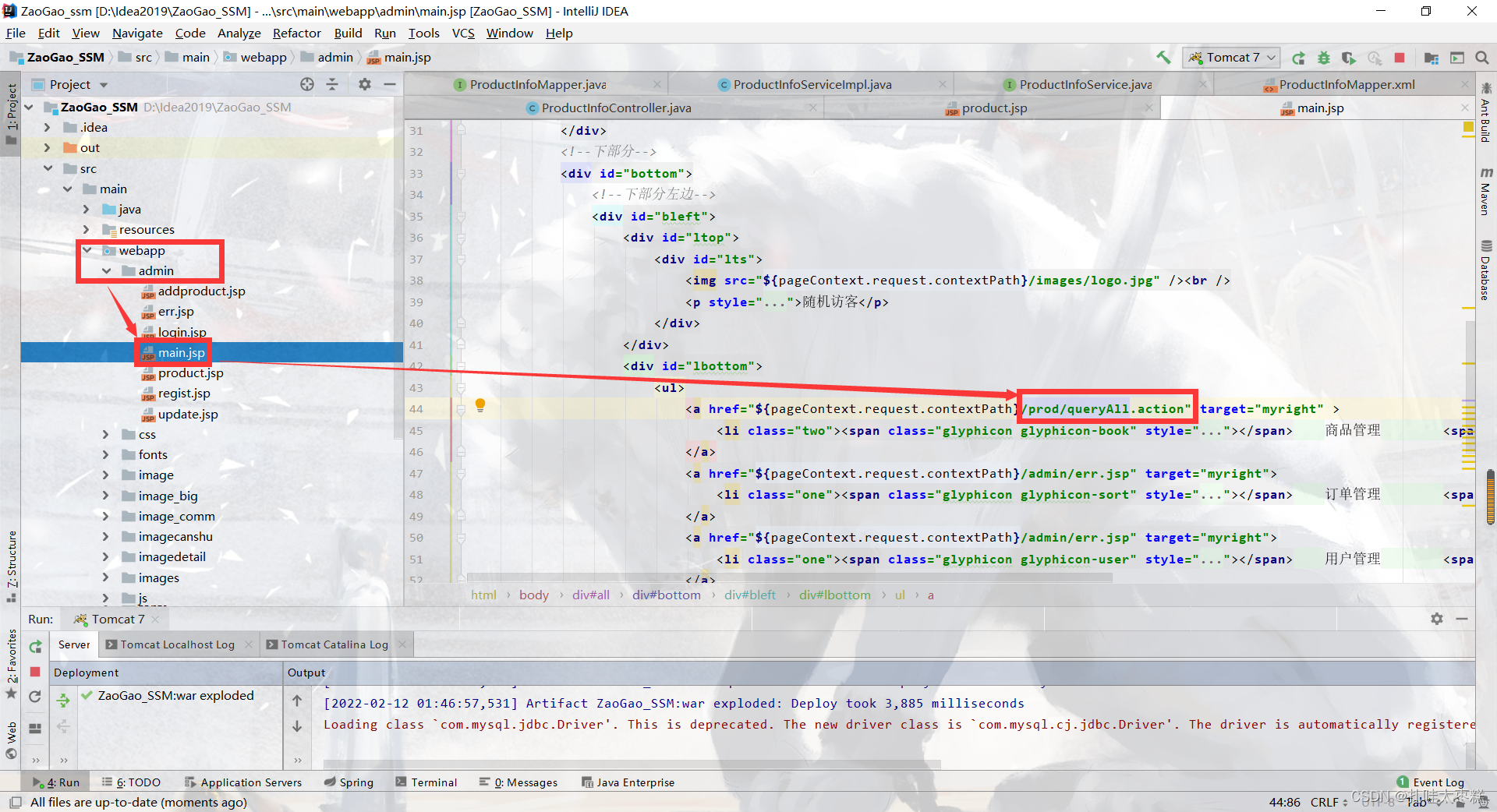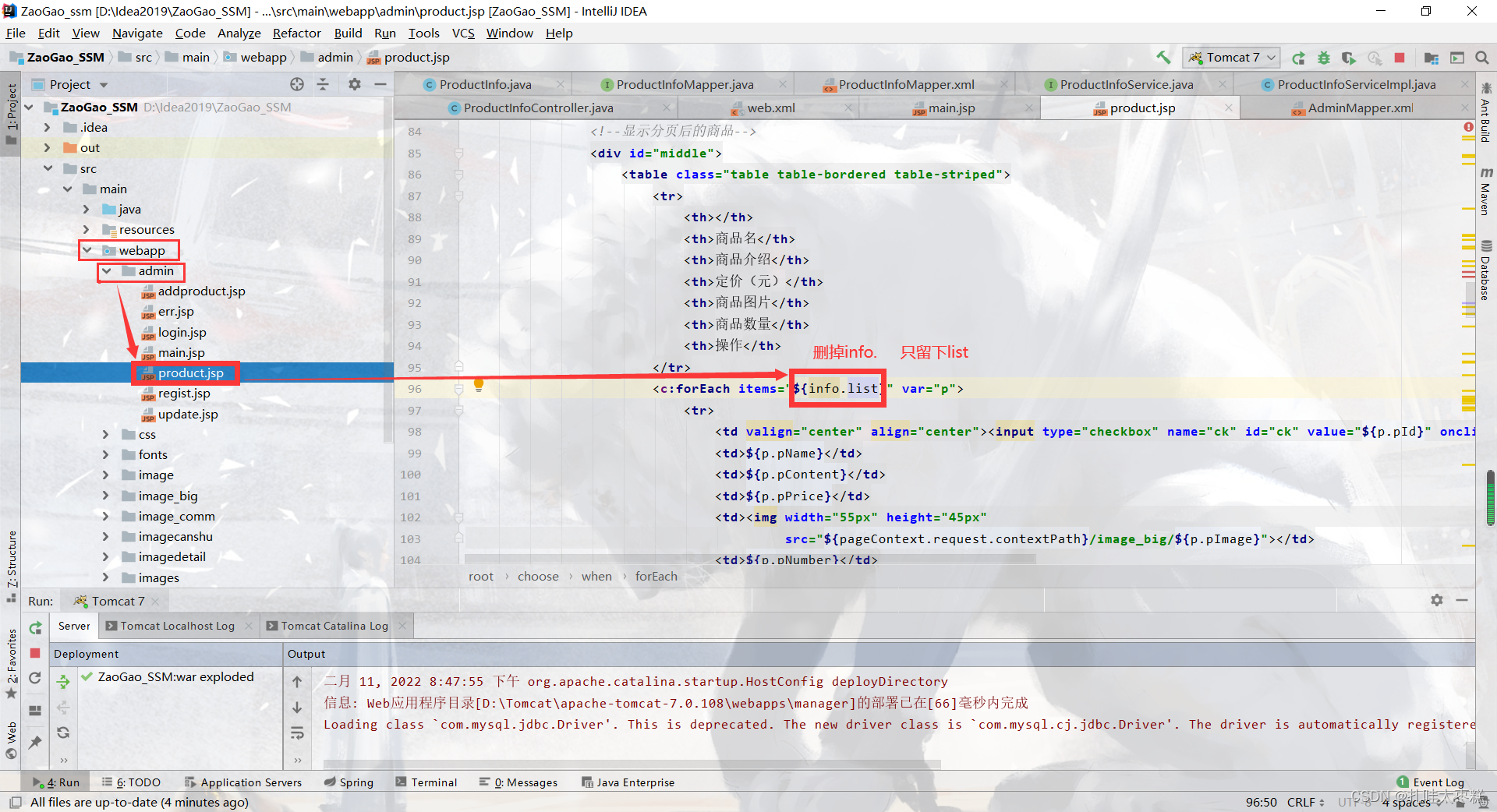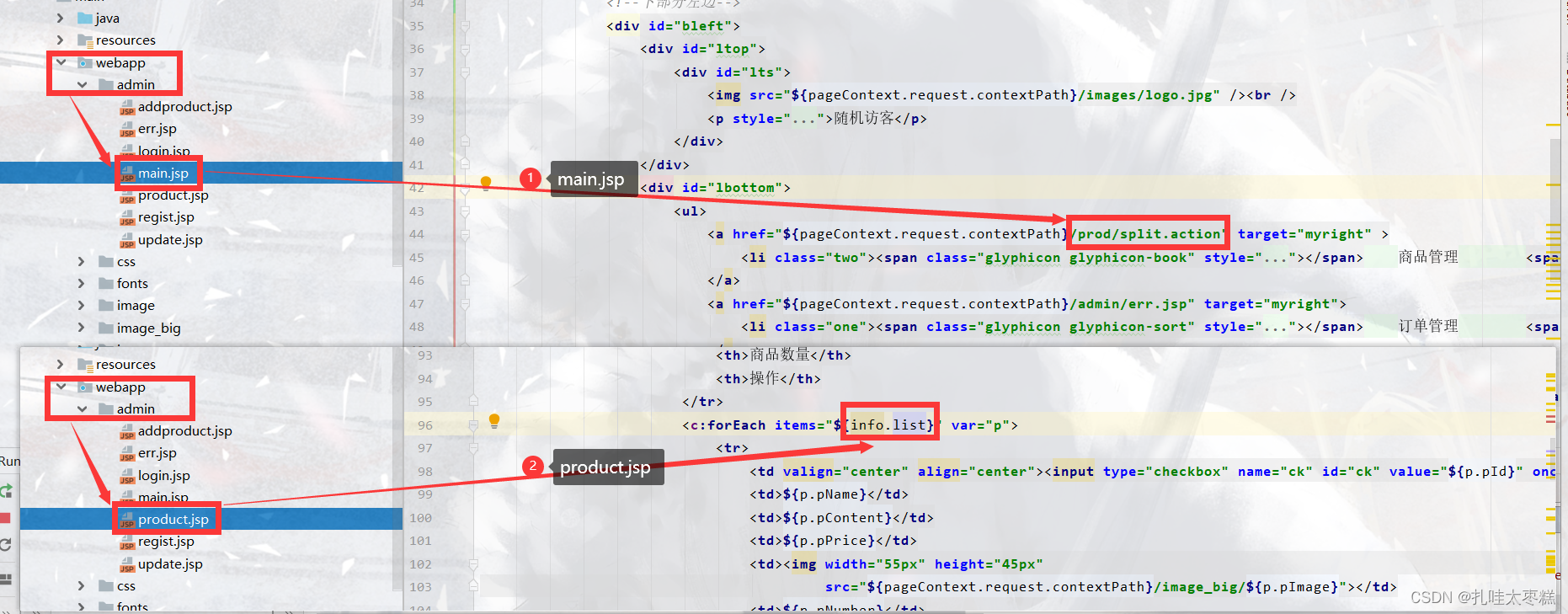 ????????首先修改一下前端product.jsp的四处代码