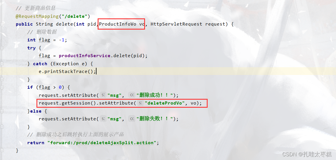 ProductInfoVo deleteProdVo = (ProductInfoVo) request.getSession().getAttribute("deleteProdVo");