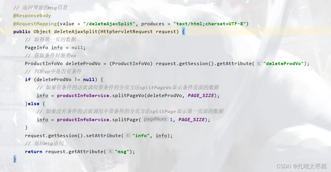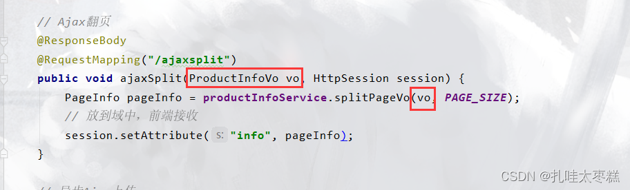 ?ProductInfoController修改上面的ajaxSplit方法,翻页的时候获取页码,停留到vo当前页,如果vo没值的话就是第一页