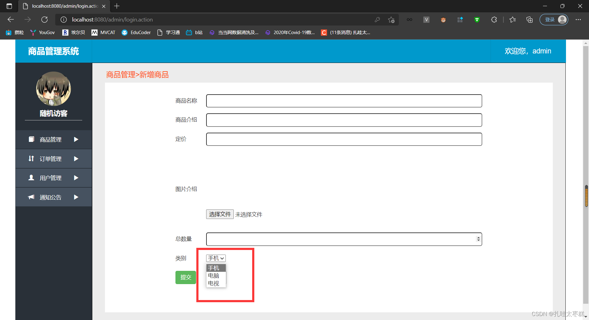 3.3.1 新增商品之下拉框显示商品类型